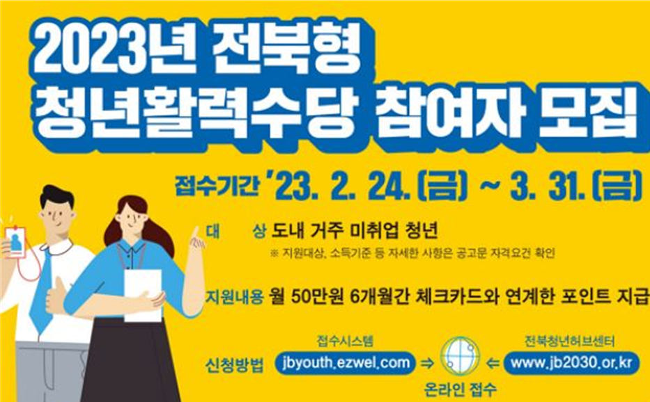 전북형 청년활력수당은 2023년 3월 31일 밤 12시까지 신청 가능.