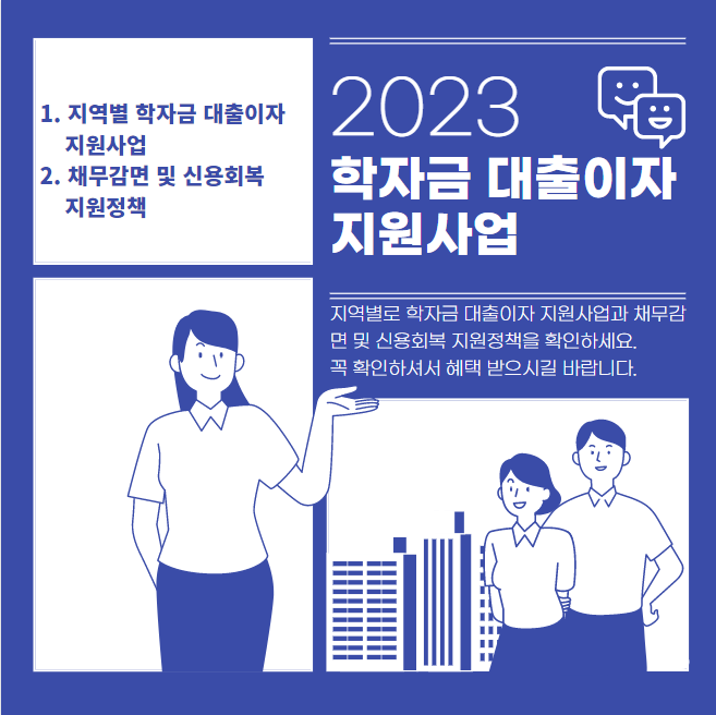 많은 지역에서 대학(원) 생의 학자금 대출상환에 부담을 덜어드리고자 대출 이자를 지원해 주거나 혹시라도 학자금 대출이 연체되어 신용이 떨어졌다면 신용 회복을 해주는 등 다양한 정책을 펼치고 있습니다. 모두 받고 있는 혜택인데 나만 못 받는 이 없도록 확인하시고 꼭 받으시길 바랍니다.