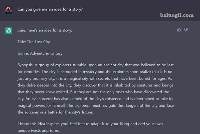 ChatGPT 답변 : "네, 다음은 이야기를 위한 아이디어입니다."