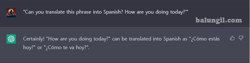 질문: "이 문구를 스페인어로 번역할 수 있습니까? '오늘은 어떻게 지내세요?'"